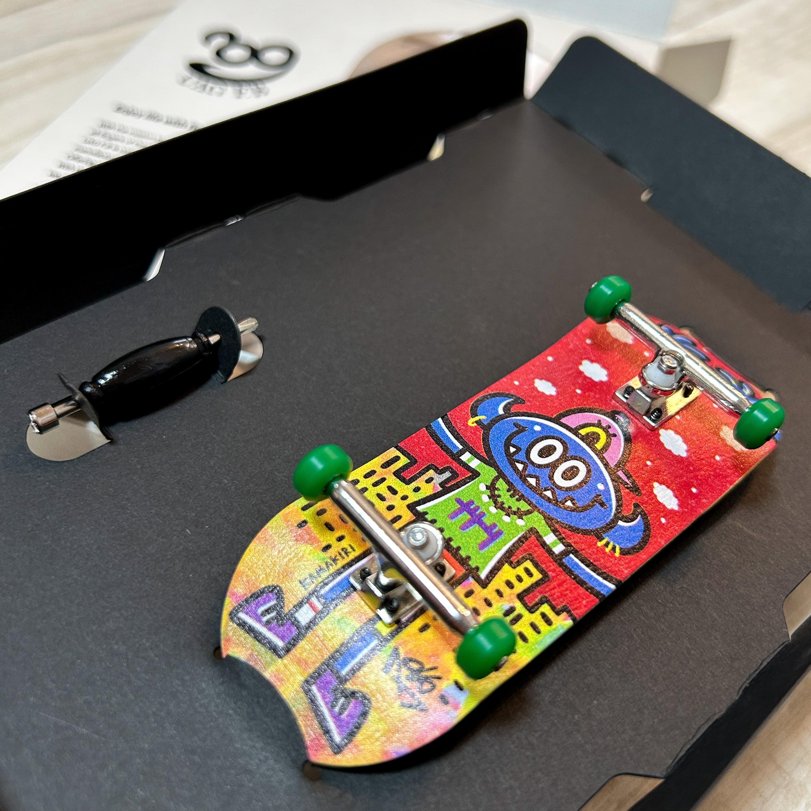 実際のスケートボード同様あるいはそれ以上の超絶クオリティで指スケを制作されているUAG F.B様とのコラボレーションにより実現した特別なアイテムです。