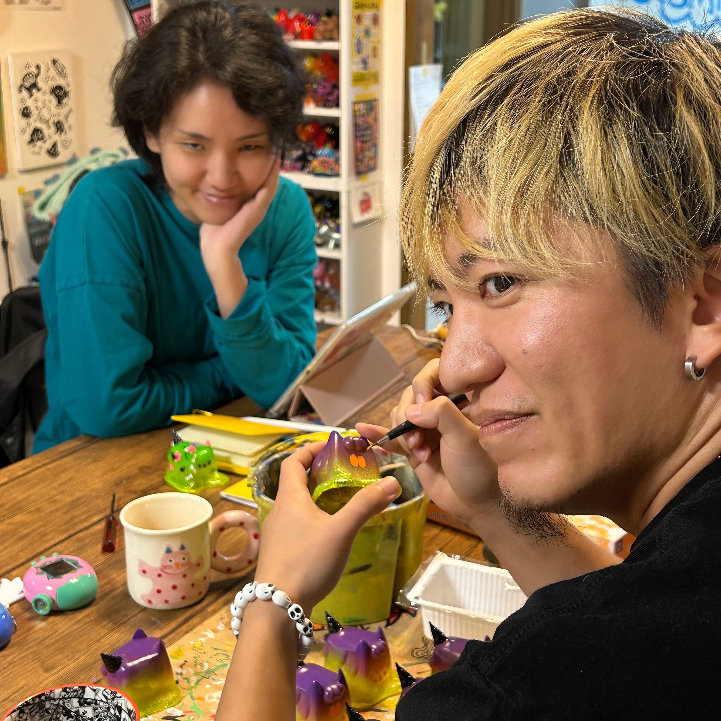 先日アトリエに遊びに来てくれた彼女と、せっかくなので今日一緒に何かつくろう!ともりあがり急遽制作に至ったこちらのコラボレーション作品。数量は多くないので抽選販売とさせていただきます!